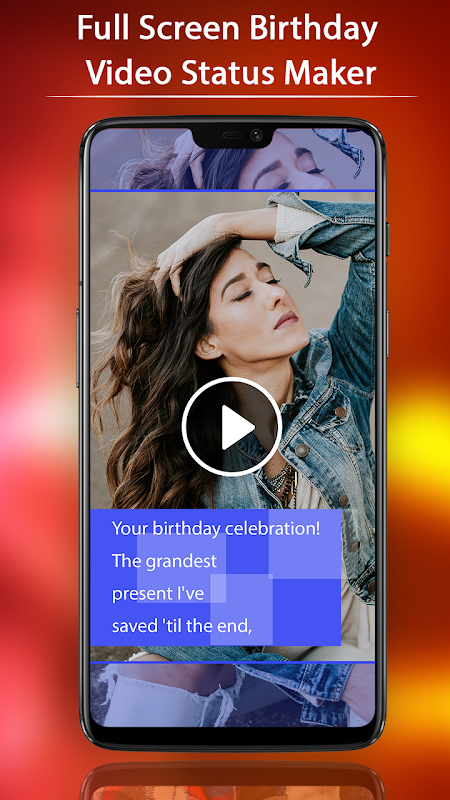 Birthday Full Screen Video Status with get the Birthday full screen video status application for your smart phones device. See what is watching from the hottest music video to your status and share with them.So, what are you waiting for...? Just install Birthday Full Screen Video Status application and get started to use this application and share videos status on your social sides..