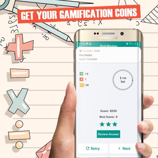 With Gamification feature, collect as many coins as you can after completing the math challenge