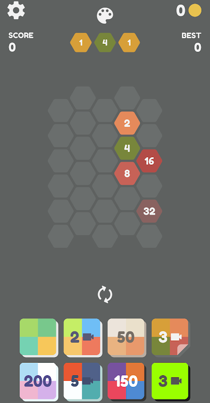⦁ Spiele Würfel-Fusionsblock-Spiele im Waben- und Teris-Format