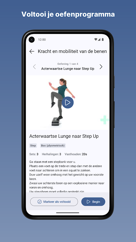 Physitrack ist der Anbieter der App. Die App zeigt Übungen, Informationsmaterial und Fragebögen, die Ihnen den Einstieg in die Behebung kleinerer körperlicher Beschwerden erleichtern.