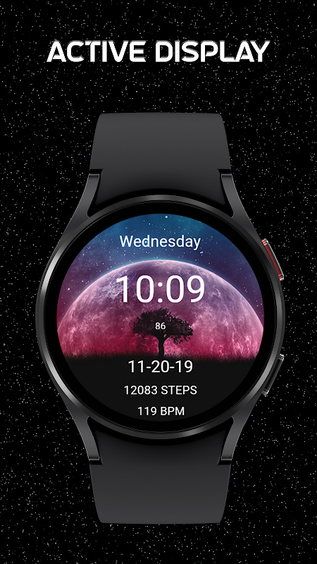 Galaxy Moon Universe Space Stars Watchface für Ihre Wear OS Smartwatch