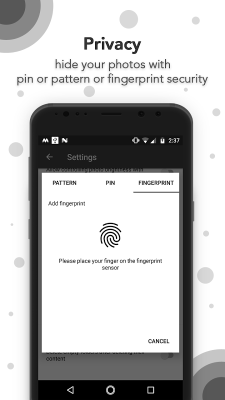 - privacy hide your photos with pin or pattern or fingerprint security.