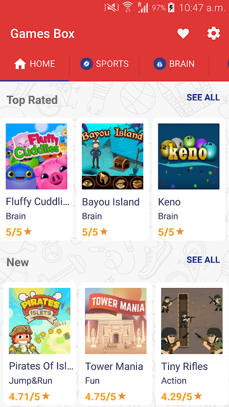 - Favourite games for easy access