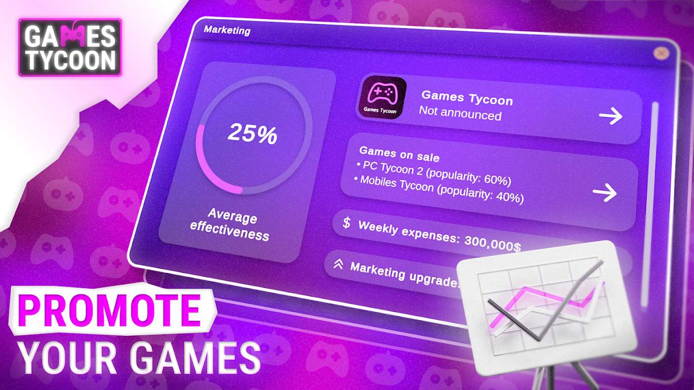 In Games Tycoon bringt Sie jede Entscheidung – von der Weiterentwicklung Ihrer Game-Engine bis zur Einführung innovativer Konsolen – der Marktführerschaft in Ihrer Branche näher. Verwandeln Sie Ihr kleines Startup in ein globales Kraftpaket und prägen Sie die Gaming-Welt. Ob Sie vom nächsten preisgekrönten Blockbuster träumen oder ein Imperium aufbauen, das die Zukunft der Technologie prägt – Games Tycoon bietet ein immersives, funktionsreiches Erlebnis, das die besten Elemente von Game-Dev-Tycoon- und Konsolen-Tycoon-Simulatoren vereint.