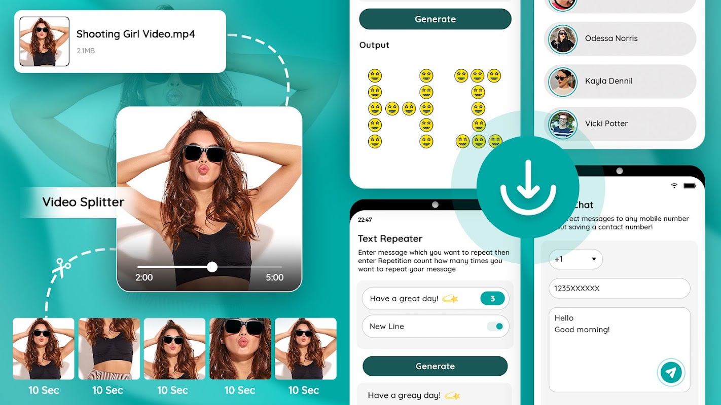 - Textwiederholung: Wiederholen Sie Textnachrichten in mehreren Zeilen pro Sekunde und teilen Sie sie.