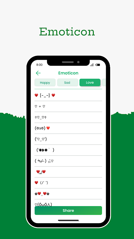 -- kann viele Emotionstexte wie Happy, Sad, Love, Angry senden...