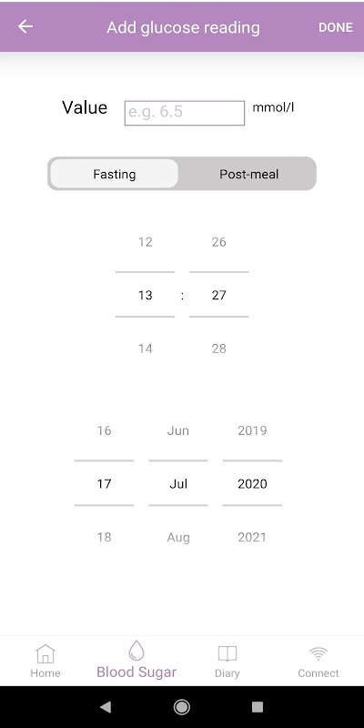 Tracking-Level von Glukose im Blut.