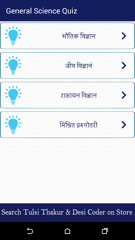General Science android app enthält die MCQ ist (Multiple-Choice-Fragen), die Studenten helfen und Fachleute für wettbewerbsfähige Prüfungen vorzubereiten, Auffrischen der Konzepte und steigert das Vertrauen.