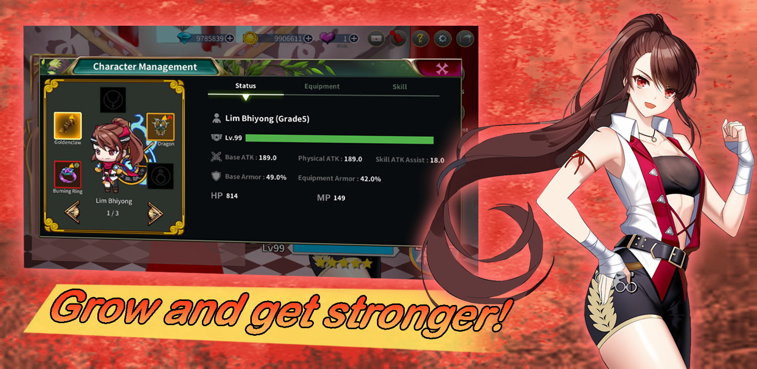 Ein Level-System, mit dem du deinen Charakter mithilfe von Charakterkarten aus Echtzeitkämpfen und Autoplay aufleveln kannst!