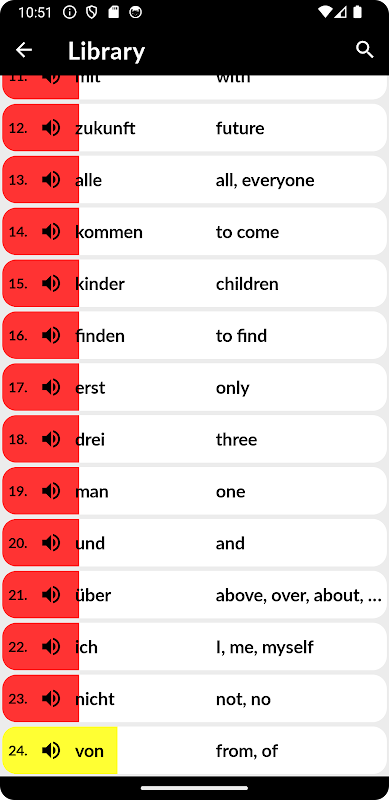 Bibliothekszugriff: Überprüfen Sie ganz einfach alle Wörter, die Sie im Bibliotheksbereich freigeschaltet haben.