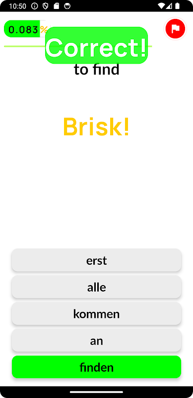 Benutzer spielen zunächst ein Spiel, bei dem sie Wörter auf Englisch sehen und aus fünf möglichen Optionen die richtige deutsche Übersetzung auswählen müssen. Alternativ könnten Benutzer aufgefordert werden, innerhalb einer bestimmten Zeit aus einer Reihe vorgegebener Buchstaben das richtige deutsche Wort zu bilden. Dieser interaktive Ansatz trägt nicht nur zur Stärkung des Wortschatzes bei, sondern verbessert auch die Erinnerungs- und Erkennungsfähigkeiten.