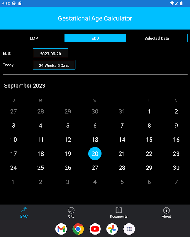 Wenn Sie LMP, EDD oder Schwangerschaftswochen an einem bestimmten Tag kennen, können Sie das heutige Gestationsalter berechnen.