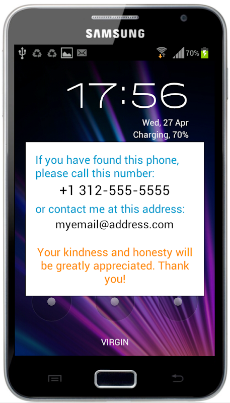 Auch wenn Sie Telefon durch einen Code geschützt ist, wer Ihr Telefon findet, wird wissen, wie Sie zu kontaktieren.