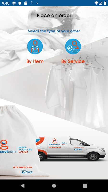 GhaseelCom Jo ist eine mobile App für einen On-Demand-Reinigungs- und Wäscheservice, die auf Knopfdruck eine kostenlose Abholung und Lieferung in Jordanien bietet.