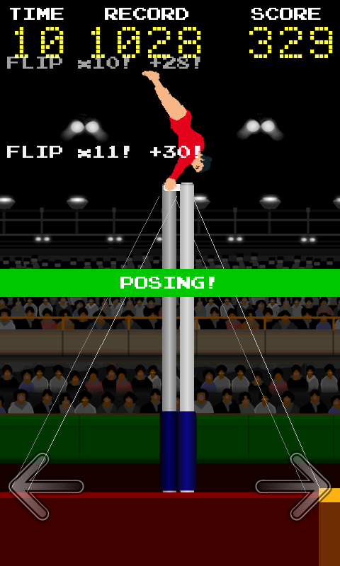 - Wische zum Posieren nach oben, wenn du fast gerade stehst, kopfüber. Je gerader du deinem Körper kommst, desto mehr Punkte bekommst du.