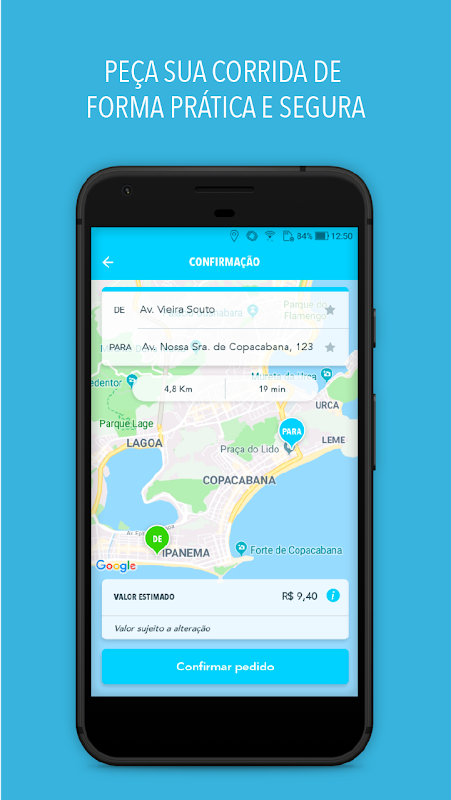 A cobrança funciona como a chamada de um táxi normal, ou seja, só inicia a contagem quando você entra no carro.