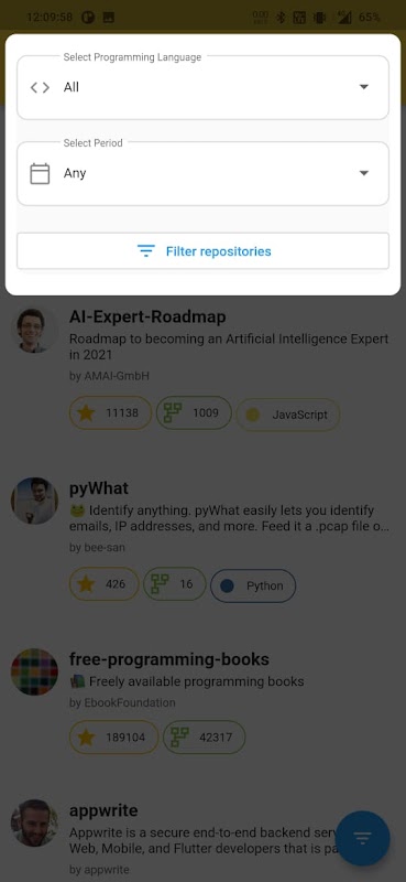 1] Alle trendigen GitHub-Repositorys werden aufgelistet