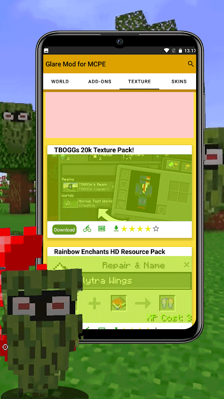 - various addon glare mod for MCPE that you can download