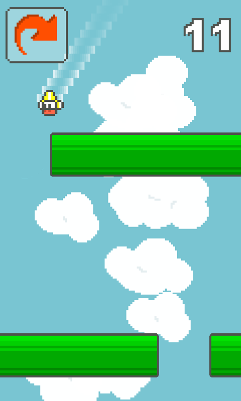 - Power ups! - duck under pipes or jump over them. If all else fails, make the gap bigger! Simply tap the icon or flick your phone to activate!