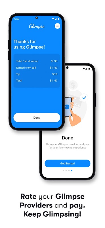 Werfen Sie einen Blick auf die Welt mit den Augen eines anderen! Glimpse ermöglicht es Ihnen, mit echten Menschen auf der ganzen Welt in Kontakt zu treten und Live-Events und Reiseziele zu sehen, als ob Sie dort wären. Suchen Sie einfach nach dem, was Sie sehen möchten, und verbinden Sie sich mit einem Glimpse-Anbieter, der bereits vor Ort ist. Dieser wird Ihnen das Video bei Bedarf live streamen. Egal, ob es sich um ein Konzert, ein Festival, ein Touristenziel oder einfach nur um einen Sonnenuntergang am Strand handelt, Glimpse bringt Sie in Echtzeit näher an das Geschehen heran. Glimpse – Eine neue Art, die Welt zu sehen!