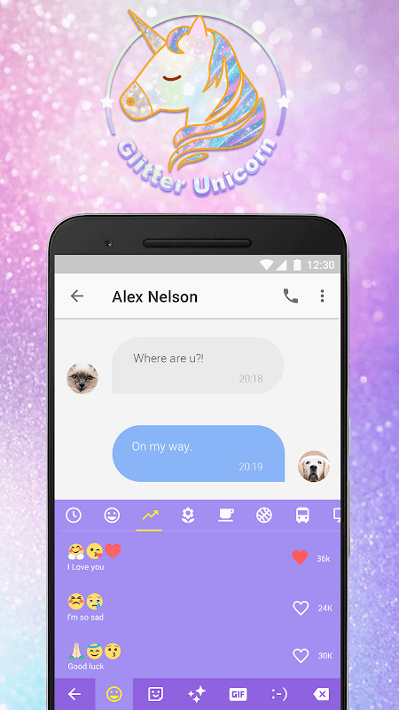 The Glitter & Rainbow Little Unicorn Animated Theme will look amazing on keyboard and you will have a wonderful sight every time you send fun emojis and type a message!