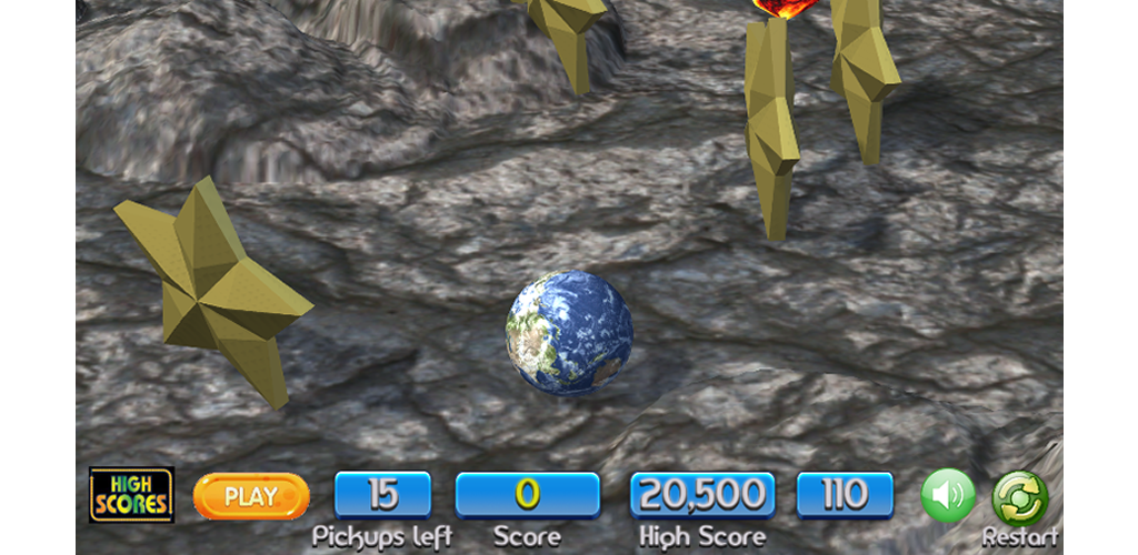 Du bist der GlobeRunner! Manövriere den Globus zu den Planeten-Pickups!