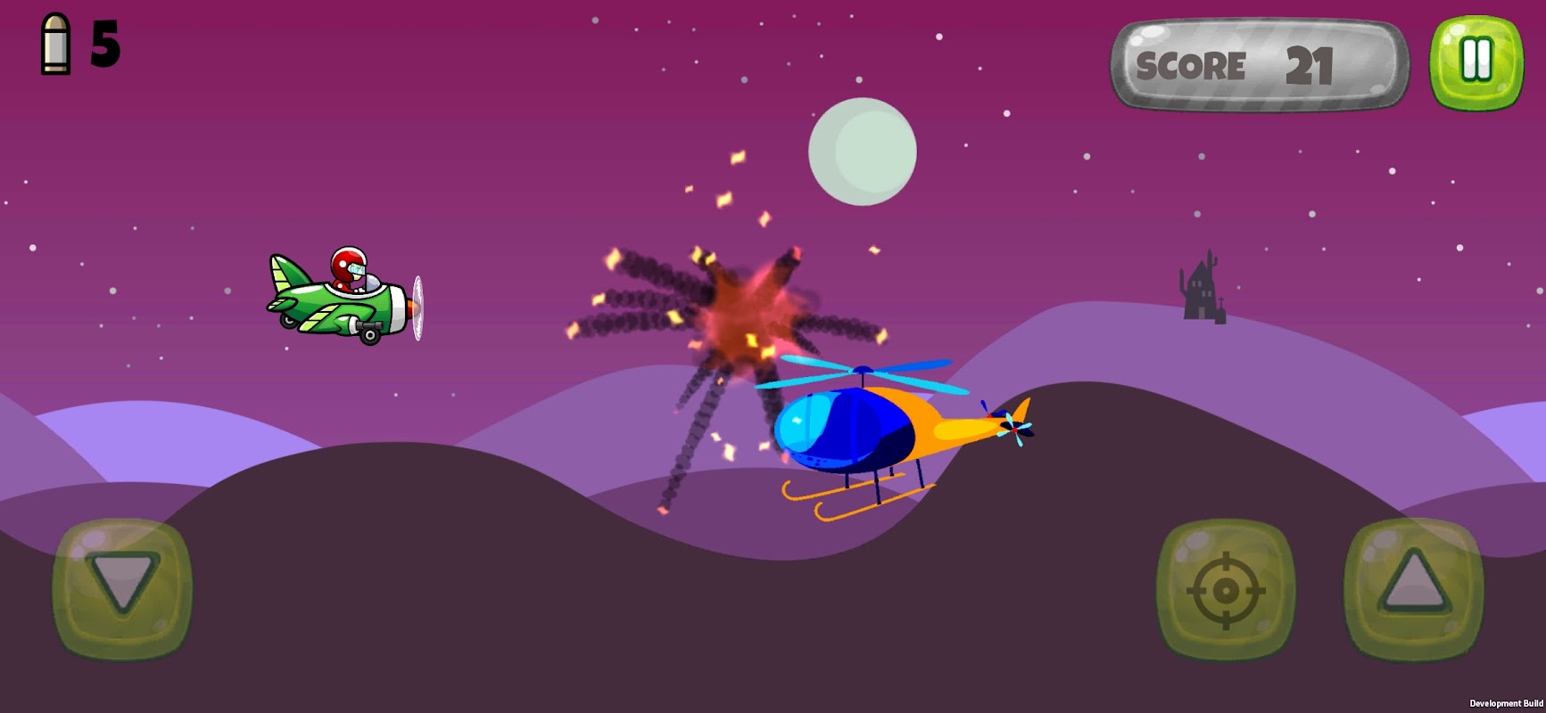 Endless 2D Plane Game with simple controls and shooting makes the game more enjoyable.