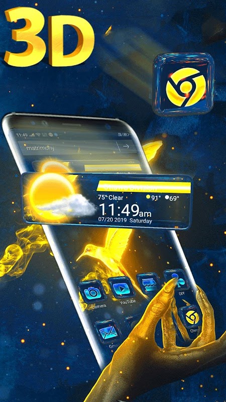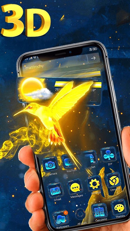 😍 You will be happy to listen that we have brought the latest golden bird 3D live glass tech theme which will make your phone the most beautiful. High-profession launcher theme with amazing icon collection and beautiful 3D weather to inform you every day’s climate. You will take more interest while operating the device with new graphics and features at your fingertips.