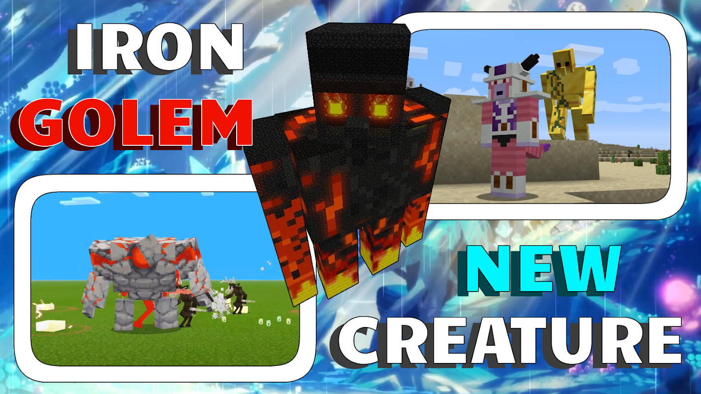 Wenn Sie ein Liebhaber von Abenteuern und Schlachten sind, ist es an der Zeit, Ihre Karte mit neuen Kreaturen zu diversifizieren - Titanen. In deinen Biomen erscheinen neue Monster: Schnee, Magmatik, Eis, Erde und andere Golems. Der Laichort jedes Parasiten ist einzigartig: einige in allen Biomen, andere nur in bestimmten. Der Hauptangriff ist das Werfen von Felsbrocken aus kubischen Blöcken. Die Texturen der Monster sind in 3D erstellt und sehr realistisch, so erschreckend schön war die Welt der virtuellen Realität noch nicht. Das Spiel wird verändert und die Kämpfe werden schwieriger und damit interessanter. Fast jedes Material kann in einen Golem verwandelt werden. Der Anruf kann im Kreativmodus von einem bestimmten Ei aus ausgeführt werden, und im Überlebensmodus müssen Sie ein wenig basteln, um den lang ersehnten Leibwächter zu erhalten. Die seltensten Kreaturen können aus Redstone- und Nethersternen hergestellt werden. Sie können einen unvergesslichen Bettkampf zwischen verschiedenen Kreaturen und Youtubern haben. Die Struktur sieht aus wie ein normales Ritual: vier Blöcke einer Würfelzutat und ein Kürbis in der Mitte. Das Add-on ist mit anderen Shadern, Texturen, Karten und Skins kompatibel und eignet sich sowohl für Erwachsene als auch für Kinder. Wenn Sie die Herausforderung des Steinwächters nicht geschafft haben, machen Sie sich keine Sorgen, wir haben Golem-Skins hinzugefügt, die sowohl für Jungen als auch für Mädchen geeignet sind. Noch nie zuvor haben Sie eine solche Mutante gesehen, Pixelmobs sind viel schrecklicher als Wither-Skelette und Tornados. Wenn Sie den Golem zähmen, wird er sowohl Ihr Haustier als auch ein starker Verteidiger-Mob sein. Sie werden der beliebteste auf dem Server und erschrecken Ihre Freunde, indem Sie einen mutierten Skin verkleiden. Sie können Ihr Spiel zum Horror machen, indem Sie einen mächtigen Boss beschwören, oder umgekehrt, indem Sie sich mit einem Riesen anfreunden. Sie erhalten ein neues Abenteuererlebnis. Wenn Sie sich entscheiden, Häuser zu bauen, um sich unter dem Bett zu verstecken, ist dies nicht die beste Idee, denn mit einem Schlag zerstört das Monster Ihre Gebäude wie eine TNT-Explosion. Der Eisengolem hat mehr Gesundheit und Rüstung. Manche Steine haben einzigartige Verhaltensmuster und Ressourcen, manche Kreaturen haben magische Kräfte, die wie ein Eisenmann in ihrer Brust pulsieren. Sie können einen neuen Mob mit einem Trank stärken und seine Transformation dauert nicht länger als zehn Sekunden. Wenn Sie noch gewinnen können, erhalten Sie eine beispiellose Belohnung aus der Truhe. Ein weiterer ungewöhnlicher Angriffseffekt ist das Werfen von Blöcken und das Aufschlagen auf den Boden, wodurch ein Erdbeben verursacht wird, das Zombies, Skeletten und Enderdrachen massiven Schaden zufügt. Neue Gegenstände (Impact Orb, Iron Spike Shards und einige Pflanzen) werden Ihr Spiel zweifellos abwechslungsreicher gestalten.