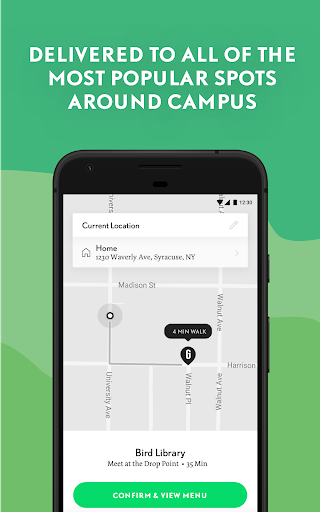 Choose from a number of convenient locations on or off campus. When selecting a drop point, you will be shown the estimated wait time in minutes until the food will arrive.