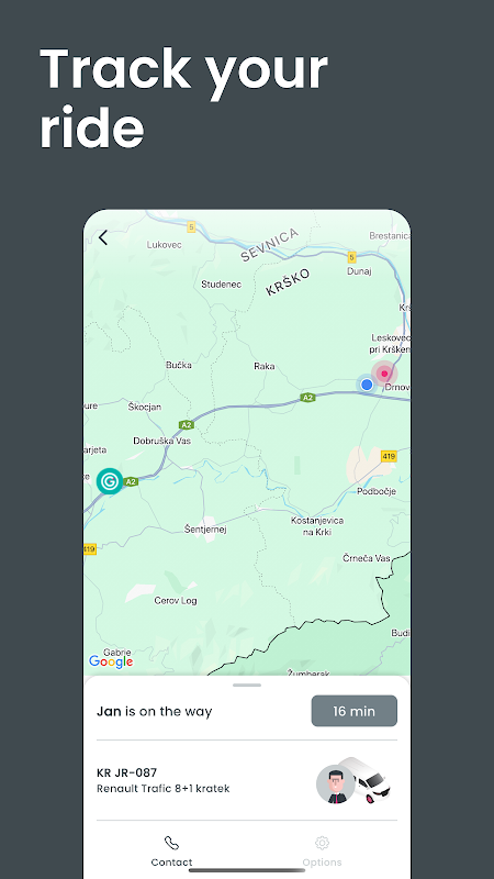 Verfolgen Sie Ihre Fahrt und verwalten Sie Buchungen mühelos mit der GoOpti-App.
