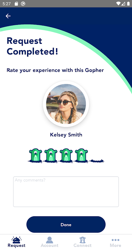 Need your grass cut, run out of wine at a party, need your groceries picked up or your favorite burger delivered right to your door? Just Gopher Request it and someone will be there before you know it. Payments are handled through Gopher’s secure network powered by Stripe, meaning awkward cash transactions are a thing of the past.