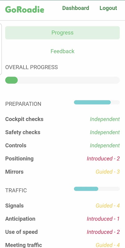 You can now visualise how close you are to sitting your driving test with GoRoadie Progress Tracker.