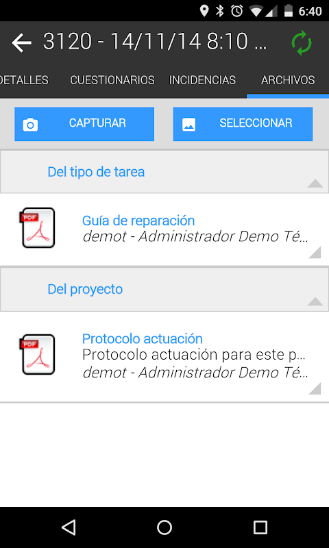 En la aplicación móvil, el trabajador puede ver la información de sus tareas pendientes, localizar en un mapa su ubicación, utilizar el GPS para acudir a sus destinos, reportar la realización de cada una de ellas, dar de alta incidencias, ponerse en contacto con otros empleados o subir ficheros y fotos.