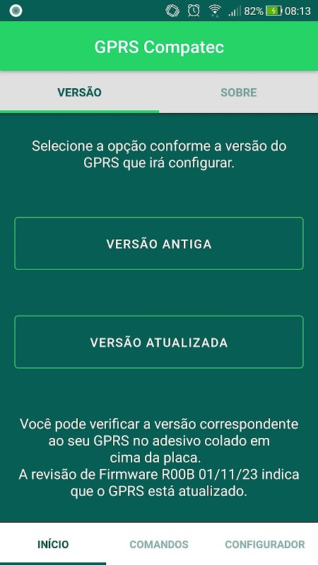 Novo formato de texto do SMS disponível para configurar o GPRS.