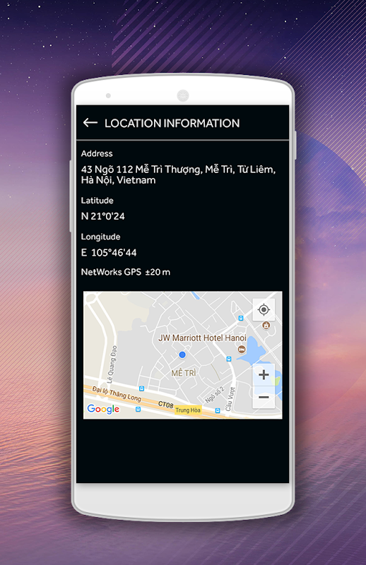 - GPS-Standort (Adresse, Breitengrad, Längengrad).