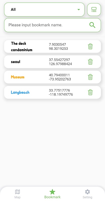 Überprüfen Sie die Koordinaten auf der Karte und machen Sie einen Favoriten.