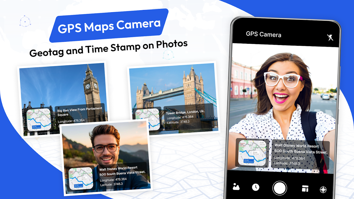 Markieren Sie Ihre unvergesslichen Orte auf Fotos mit der GPS-Kartenkamera.