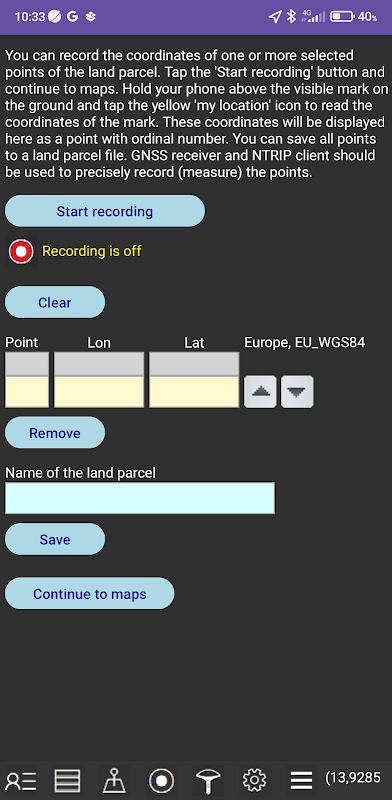 Daher können Sie mit ein wenig Aufwand und mit unserer Hilfe die Koordinaten, die Sie auf dem Geoportal gelesen haben, in diese App eingeben. Dies ist definitiv die genaueste Möglichkeit, die Grenzen Ihres Grundstücks zu definieren, sodass Sie alle Funktionen dieser App nutzen können.