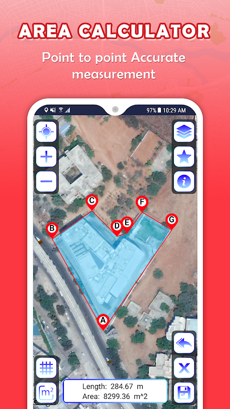 Flächenrechner: Nützliche Offline-GPS-Funktion zur Standortverfolgung. Verwenden Sie dieses Werkzeug, um einen Bereich auf einer Karte zu zeichnen und die Messung des umschlossenen Bereichs zu ermitteln.