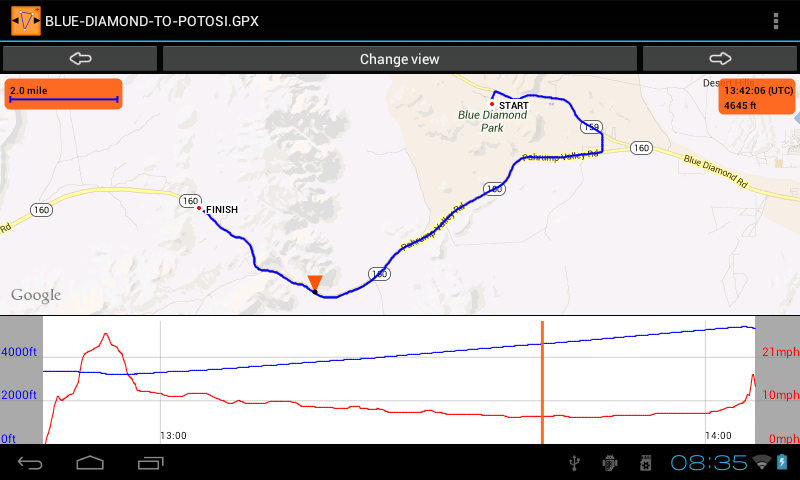 Track Browser zeigt Ihre Track, Route und Wegpunkte auf einer Karte oder Satellitenbild. Weitere Ansichten bieten detaillierte Datei-Informationen, eine Höhe und Geschwindigkeit Diagramm.