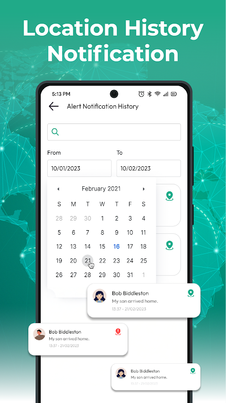 Erhalten Sie mit der Standortverlaufsfunktion Zugriff auf ein Protokoll früherer Standorte und erhalten Sie detaillierte Einblicke in Bewegungsmuster. Erhalten Sie sofortige Benachrichtigungen, wenn ein gemeinsamer Kontakt einen Standort erreicht oder verlässt. Diese Benachrichtigungen helfen Ihnen, auf dem Laufenden zu bleiben, ohne ständig den Tracker Ihres Telefons überprüfen zu müssen.