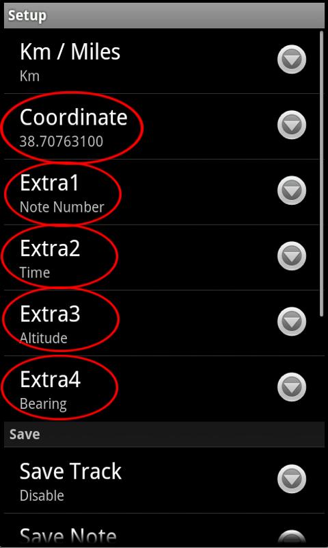Parameters in EXTRA: Speed, Maximum Speed, Average Speed, Altitude, Heading, Total climb, Total descent, Average Speed Partial, Time, Chonometer, Note Number