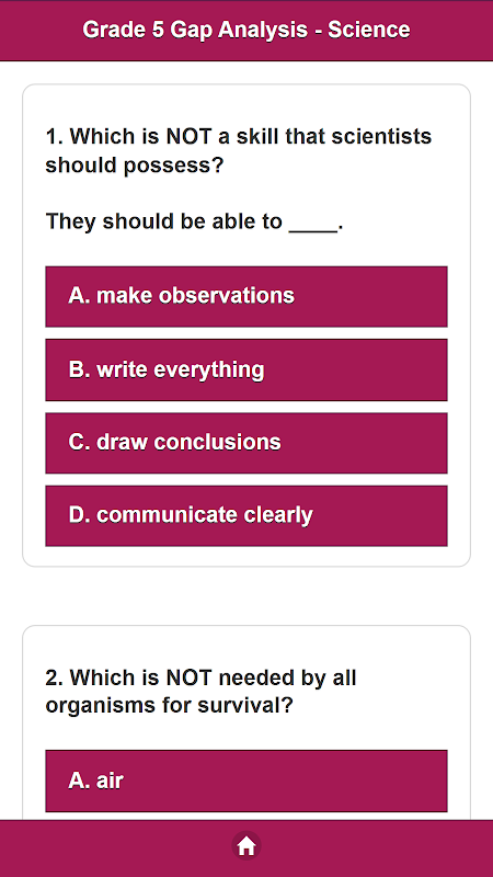 Die App „Grade 5 Gap Analysis – Science“ ist ein innovatives Bildungstool, das Schüler, Pädagogen und Eltern dabei unterstützen soll, den akademischen Fortschritt von Schülern der 5. Klasse in den Naturwissenschaften zu bewerten und zu verbessern. Diese App kombiniert die Konzepte der Lückenanalyse und der Wissenschaft, um eine umfassende Bewertung der Kenntnisse und Fähigkeiten eines Schülers zu ermöglichen und gleichzeitig ein ganzheitliches Verständnis der miteinander verbundenen Themen zu fördern.