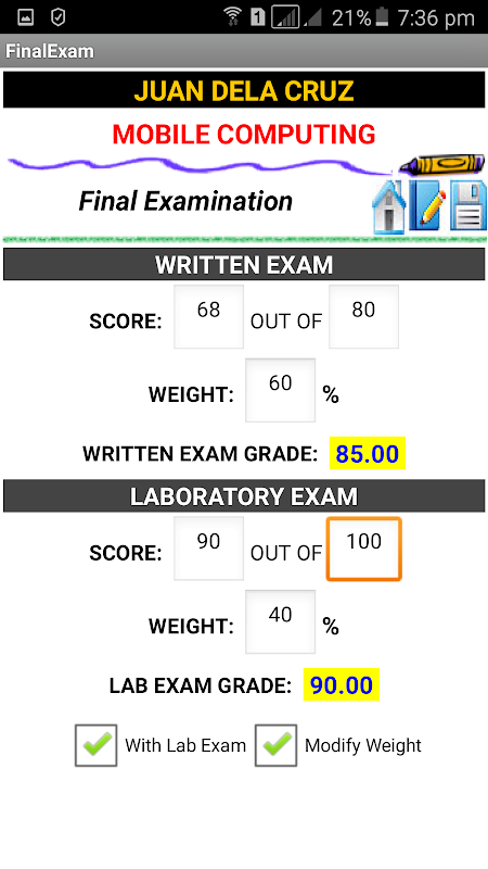It is the better way of not to be shocked when you receive your grades. Download, use it, setup the grading system, input your scores, and tabulate the final grade.