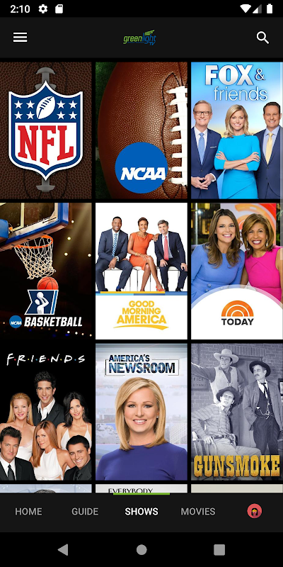 Internetkunden von Greenlight können Live-TV erleben, ohne eine große, uralte Set-Top-Box zu benötigen. Greenlight TV ist eine radikal neue App, die auf allen heute beliebtesten Video-Streaming-Mediengeräten läuft. Genießen Sie Funktionen wie Replay TV*, Cloud DVR** und Restart TV* *Replay und Restart TV sind im Rahmen unserer Inhaltsvereinbarungen möglicherweise nicht für alle Netzwerke oder Sendungen verfügbar. ** Cloud-DVR-Aufzeichnungen können nur dann außerhalb des Hauses angesehen werden, wenn unsere Inhaltsvereinbarungen dies zulassen.