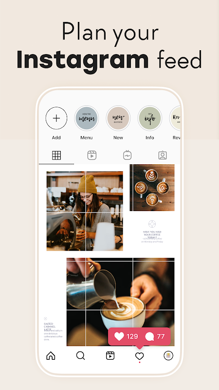 Grids bietet eine völlig neue Art der Nutzung Ihres Instagram, die in ein einfaches und schönes Design gehüllt ist. Verpassen Sie nicht die Gelegenheit, sich auszudrücken und sich durch diese unkonventionelle Art, Fotos zu teilen, hervorzuheben!