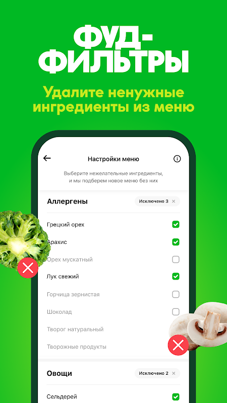 🥦 Menüanpassung: Sie können nur Ihre Lieblingsgerichte sammeln, alle Zutaten ausschließen oder mit einem Klick etwas Eigenes hinzufügen.
