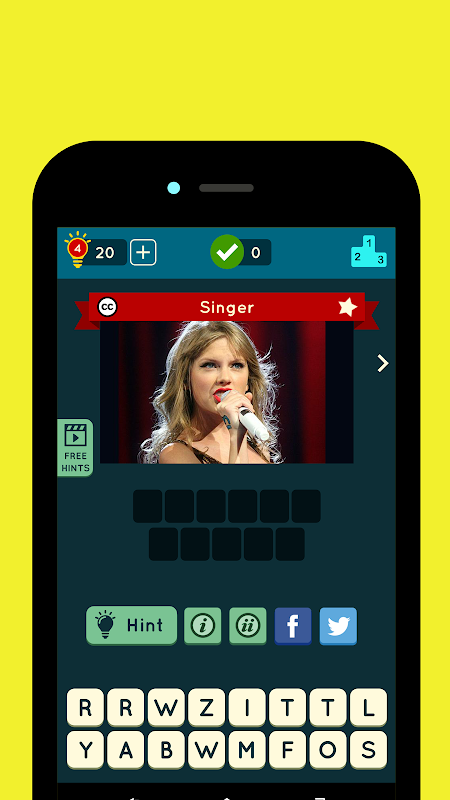 Picture Pop Quiz ist das ultimative Quiz, mit dem Sie Ihr Wissen über die Popkultur auf die Probe stellen können. Erfahren Sie, wie viele Bilder Sie erraten können, und fordern Sie Ihre Freunde heraus. Wer errät die meisten Bilder? Picture Pop Quiz ist eines der größten und besten Ratespiele. Außerdem ist es sehr anwenderfreundlich; es ist für alle Altersstufen geeignet und familienfreundlich.