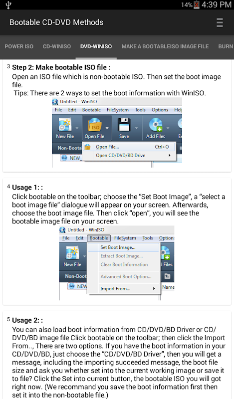 Es ist ein Tutorial-App, die uns zeigt, wie bootbare CD-DVD, bootfähige SD-Karte, bootfähigen USB, Software-Update zu machen.